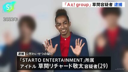 人気アイドルグループ「Aぇ! group」のメンバー、草間リチャード敬太容疑者(29)が4日午前5時ごろ、東京都新宿区新宿2丁目のビル付近で下半身を露出したとして、公然わいせつ疑いで警視庁四谷署に逮捕されたことを受けて、所属事務所の「STARTO ENTERTAINMENT(スタート・エンターテイメント)」が公式サイトで謝罪した。