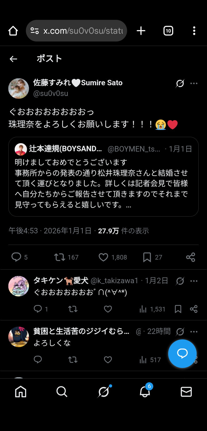 [引用元] 辻本達規(BOYSANDMEN) @BOYMEN_tsujimo (2026/01/01 10:38:51)