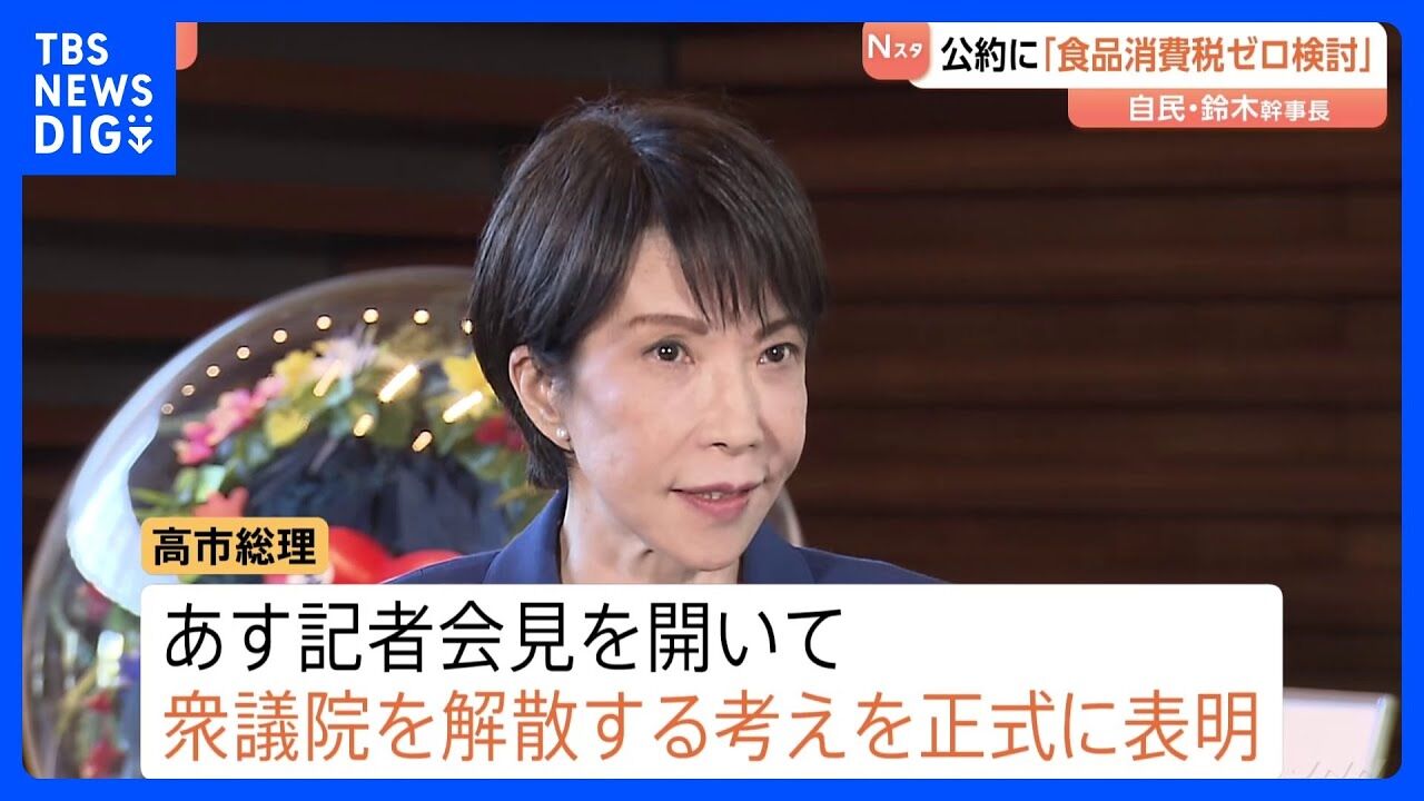 高市早苗首相(自民党総裁)が23日召集の通常国会冒頭で衆院を解散した際の公約として、時限的な食料品の消費税率ゼロを盛り込む案が浮上した。複数の関係者が16日、明らかにした。自民と日本維新の会による2025年10月の連立政権合意では「飲食料品について2年間に限り消費税の対象としないことも視野に、法制化を検討する」としていた。政権内では、実施する場合は26年度内に開始すべきだとの意見が出ている。