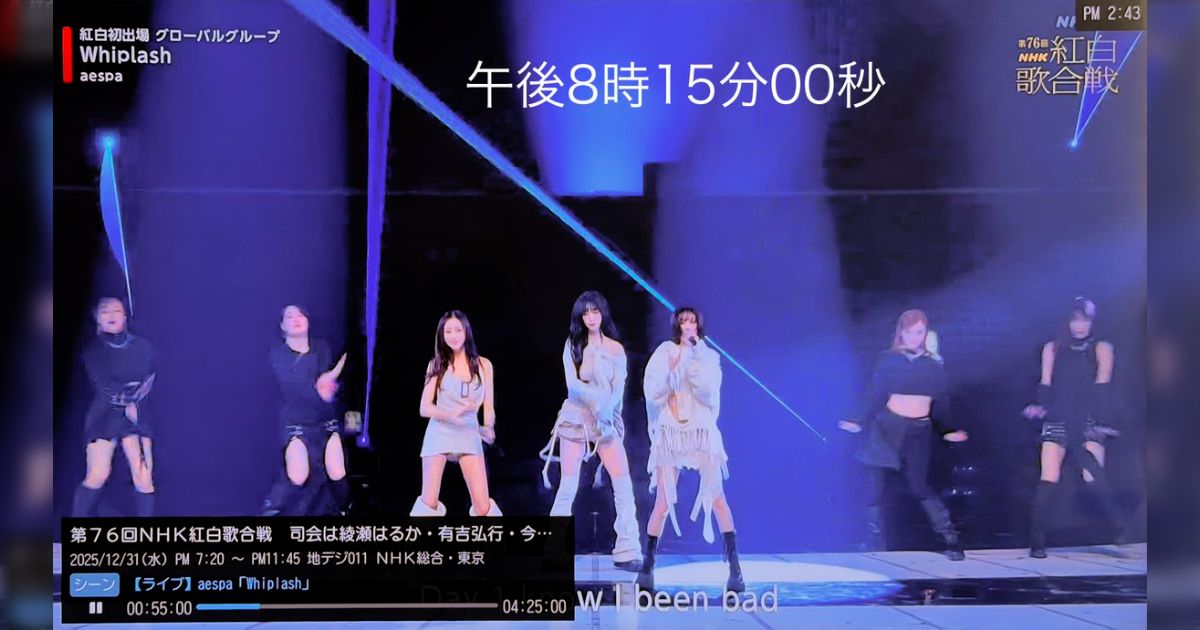 「紅白出演時のパフォーマンスは、非常に評判が良かったです。ただ、年が明けた1月1日に韓国で放送された音楽特番『MBC歌謡大祭典』にaespaが出演しており、そこで元気に歌い踊るニンニンが映った画面がXに投稿されたんです。これで再び大炎上しました」(芸能記者)